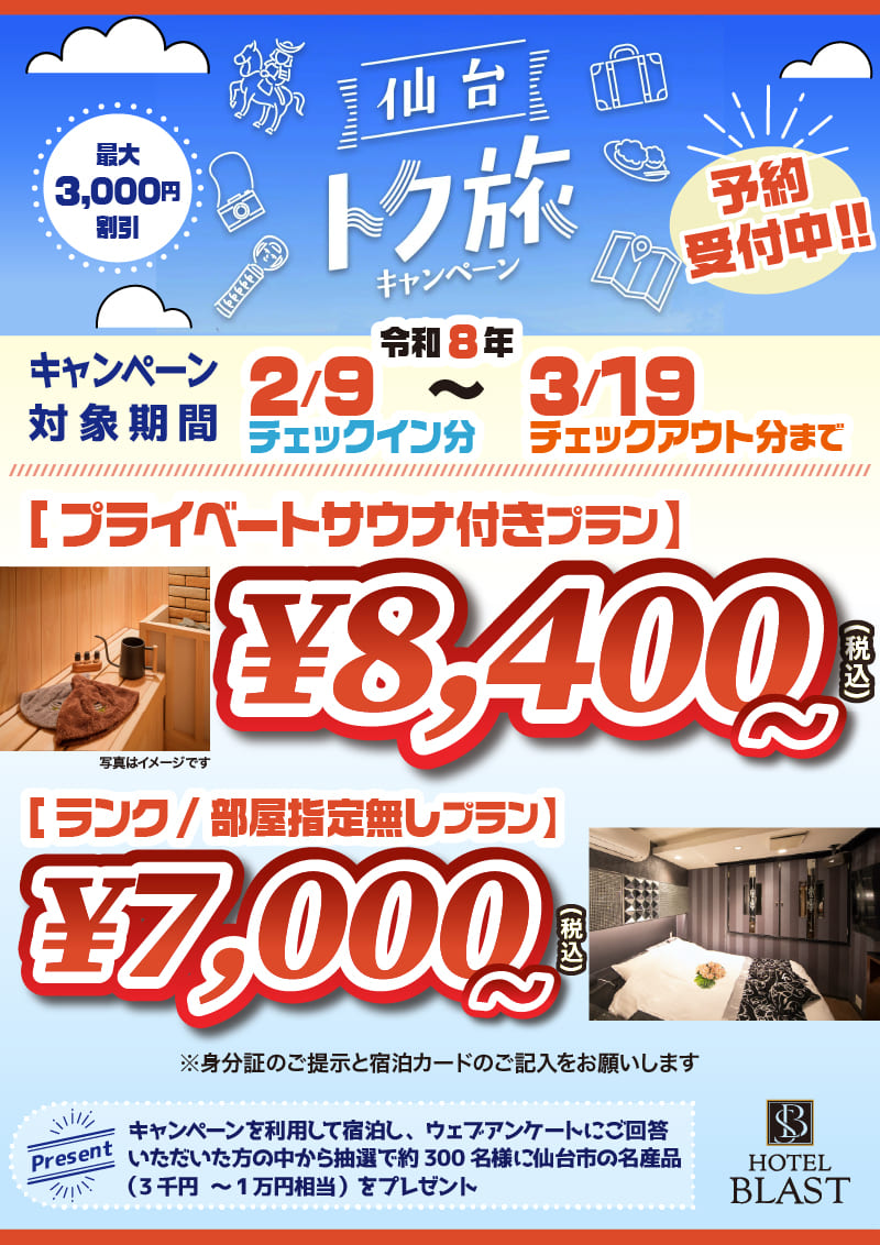 仙台トク旅キャンペーン対象予約プラン受付中!!