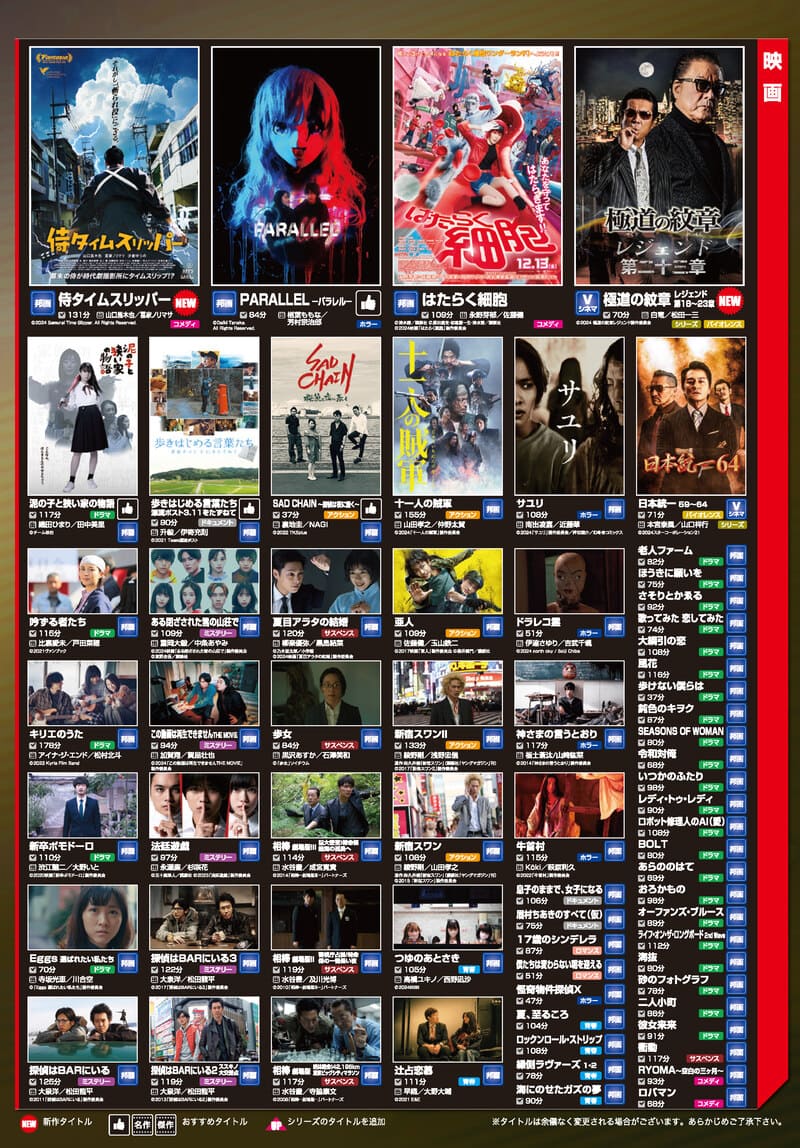 ※一部店舗ではお取扱いがございません。アダルト作品は画像では紹介しておりませんので、直接ホテルにてご確認くださいませ。