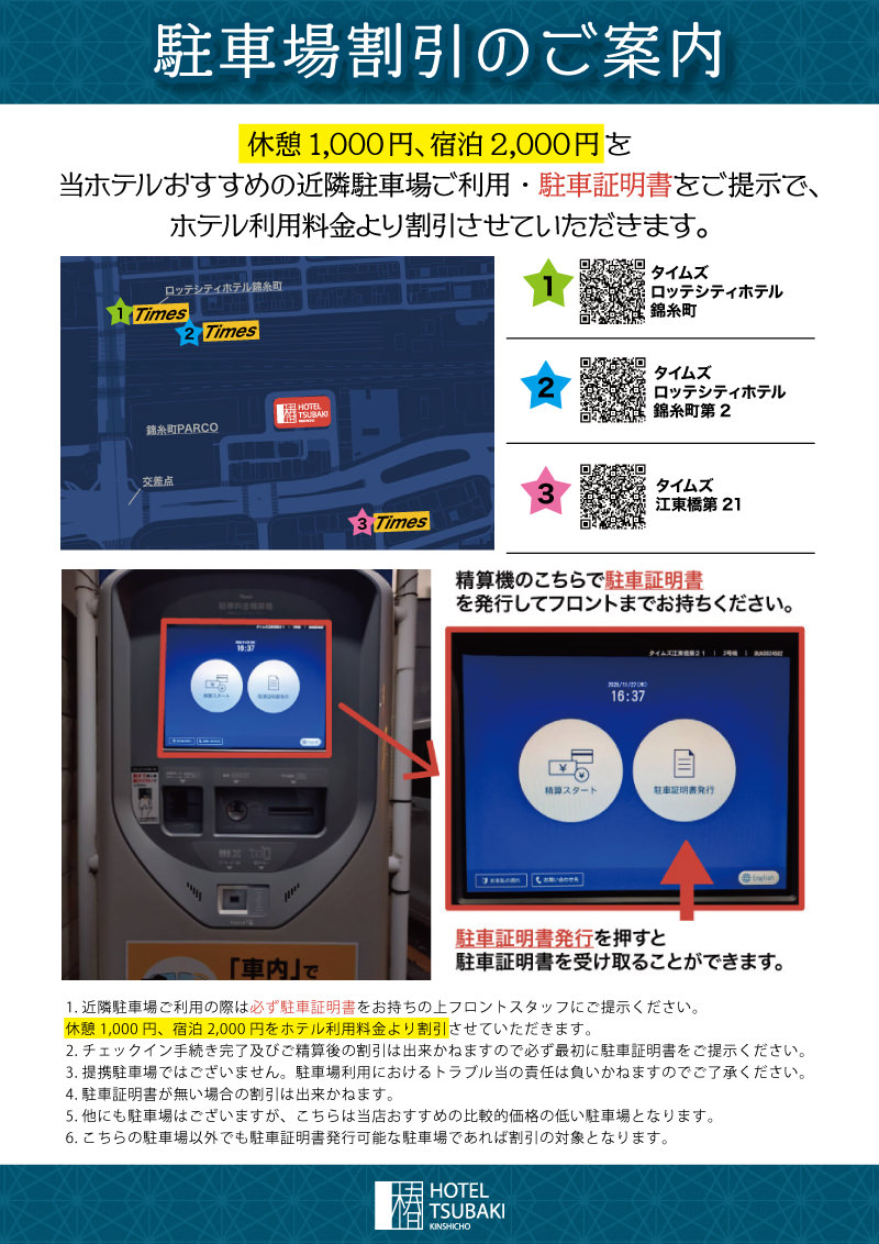 メンバーポイント、割引クーポンやハピホテマイルでのお割引を希望の場合、精算前にお伝えください。
